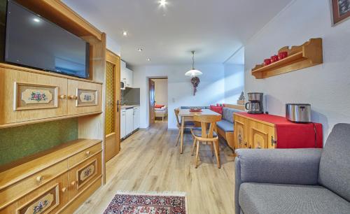 Featuring a private entrance, this apartment is comprised of 1 living room, 1 separate bedroom and 1 bathroom with a shower. Meals can be prepared in the well-fitted kitchen, which is fitted with a stovetop, a refrigerator, kitchenware and a microwave. The apartment offers a tea and coffee maker, a seating area, a dining area, a flat-screen TV with cable channels, as well as mountain views. The unit offers 2 beds.
