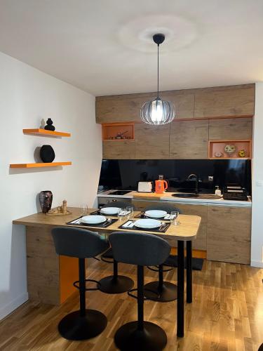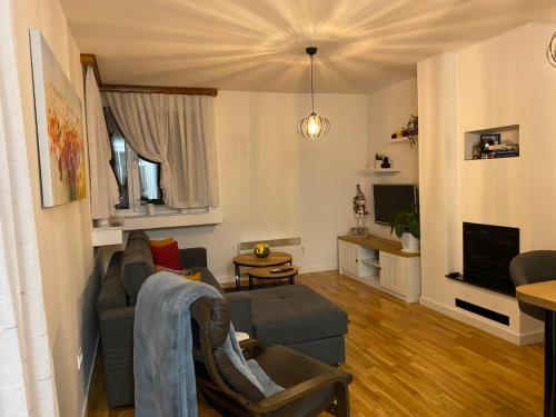 This apartment's special feature is the fireplace. Featuring a private entrance, this apartment comprises 1 living room, 1 separate bedroom and 1 bathroom with a walk-in shower and a hairdryer. The fully equipped kitchen features a stovetop, a refrigerator, kitchenware and an oven. The apartment provides a flat-screen TV with cable channels, soundproof walls, a seating area, a dining area as well as mountain views. The unit offers 2 beds.
