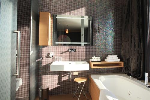 The spa bath is the standout feature of this double room. The spacious double room features air conditioning, a minibar, a terrace with sea views as well as a private bathroom boasting a walk-in shower. The unit has 1 bed.