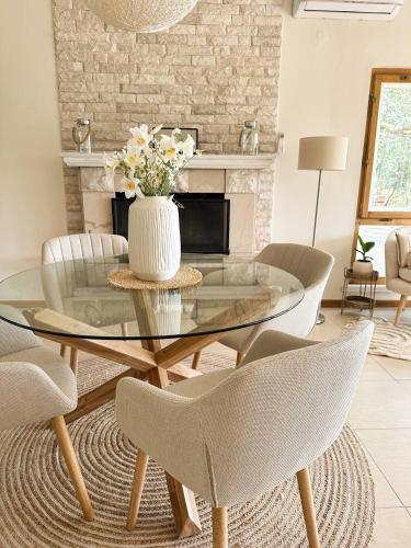 The holiday home has 3 bedrooms, 1 bathroom, bed linen, towels, a flat-screen TV with satellite channels, a dining area, a fully equipped kitchen, and a terrace with sea views. Guests can take in the ambience of the surroundings from an outdoor dining area or keep themselves warm by the fireplace on colder days. For added privacy, the accommodation features a private entrance.