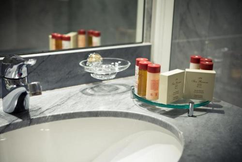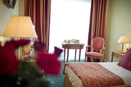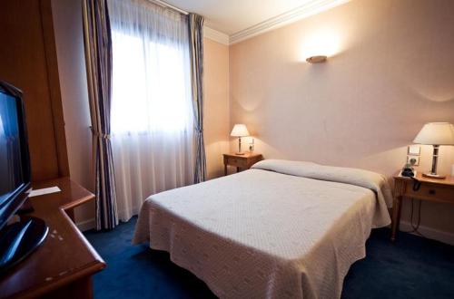 Guest rooms at this 4-star hotel are air-conditioned and soundproofed. Each has a marble private bathroom, flat-screen satellite TV and Wi-Fi internet access.