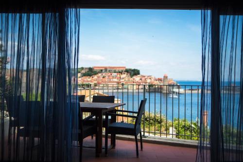 Located a few meters from the La Cortina windmill, the establishment elegantly overlooks the sea over the bay of Collioure, its royal castle and its famous Notre Dame des Anges bell tower.