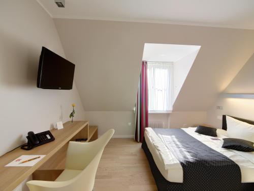 A flat-screen satellite TV and private bathroom with hairdryer are featured in all the rooms at Boutique Hotel Orangerie. Providing a complimentary bottle of mineral water, each one is bright, with modern furnishings and a neutral colour scheme.