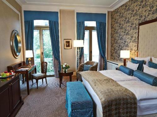 Spacious room offering elegant desk and views of park, opera house, or city.