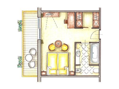 Spacious elegant Alpine-style room with a desk, safe and satellite TV. Comes with a double bed, wired internet and wood furniture. The large bathroom has either a shower or a bath, towel warmer and both bathrobe and slippers.
