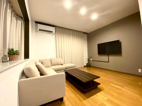 Meals can be prepared in the kitchenette, which has a refrigerator, a microwave and an electric kettle. This holiday home has air conditioning, tatami, a flat-screen TV and a terrace. The unit has 2 beds.