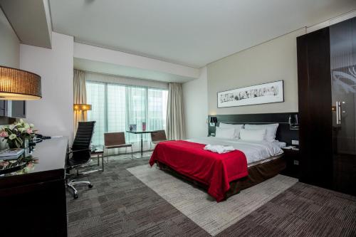 This spacious suite consists of 1 bedroom, a seating area and 2 bathrooms with a bath and a shower. The air-conditioned suite provides a flat-screen TV with satellite channels, soundproof walls, a minibar, a tea and coffee maker as well as city views. The unit offers 1 bed.