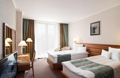 The spacious twin room features air conditioning, a minibar, as well as a private bathroom boasting a bath or a shower and a hairdryer. The twin room has carpeted floors, a seating area with a TV with cable channels, a wardrobe, a safe deposit box, as well as an electric kettle. The unit has 2 beds.