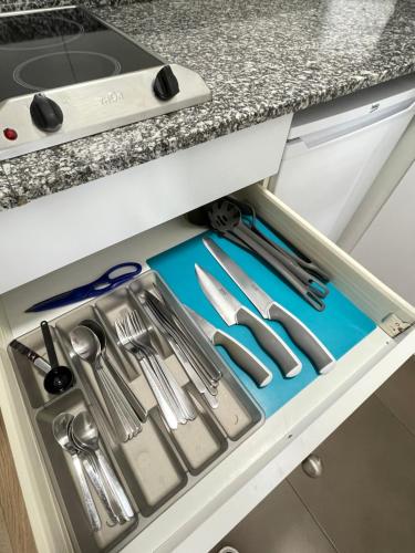 This apartment features a satellite TV, kitchenware and microwave. The safe has a surcharge.