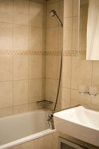 Located on the upper floor (5th floor), this apartment has a bedroom for 2 people and a living room with a Murphy bed for 2 people and 2 bunk beds. There are 2 bathrooms, one with shower and one with bathtub, a flat-screen TV in the living room, a kitchen including a dishwasher, Raclette and Fondue facilities and a balcony with panoramic views of the Alps.