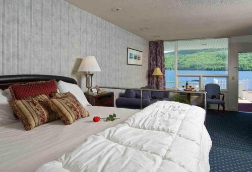 It’s all about the fantastic view in the Lakefront Two Queen Rooms. These rooms have two Queen beds with laminate flooring, jacuzzi tubs and stand-up showers. They are located on the ground floor, directly above our boat dock area, and offer you a beautiful close-up view of Lake George. Enjoy a semi-private patio area just outside the door with cushioned lounge chairs. They are also equipped with a refrigerator, cable tv, microwave, coffee maker, hair dryer, iron and ironing board. All of our rooms are non-smoking and pets are not allowed.
