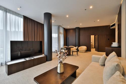 This spacious suite consists of 1 living room, 1 separate bedroom and 2 bathrooms with a walk-in shower and free toiletries. This air-conditioned suite comprises a dining area, a flat-screen TV with cable channels soundproof walls and a terrace. The unit offers 2 beds.